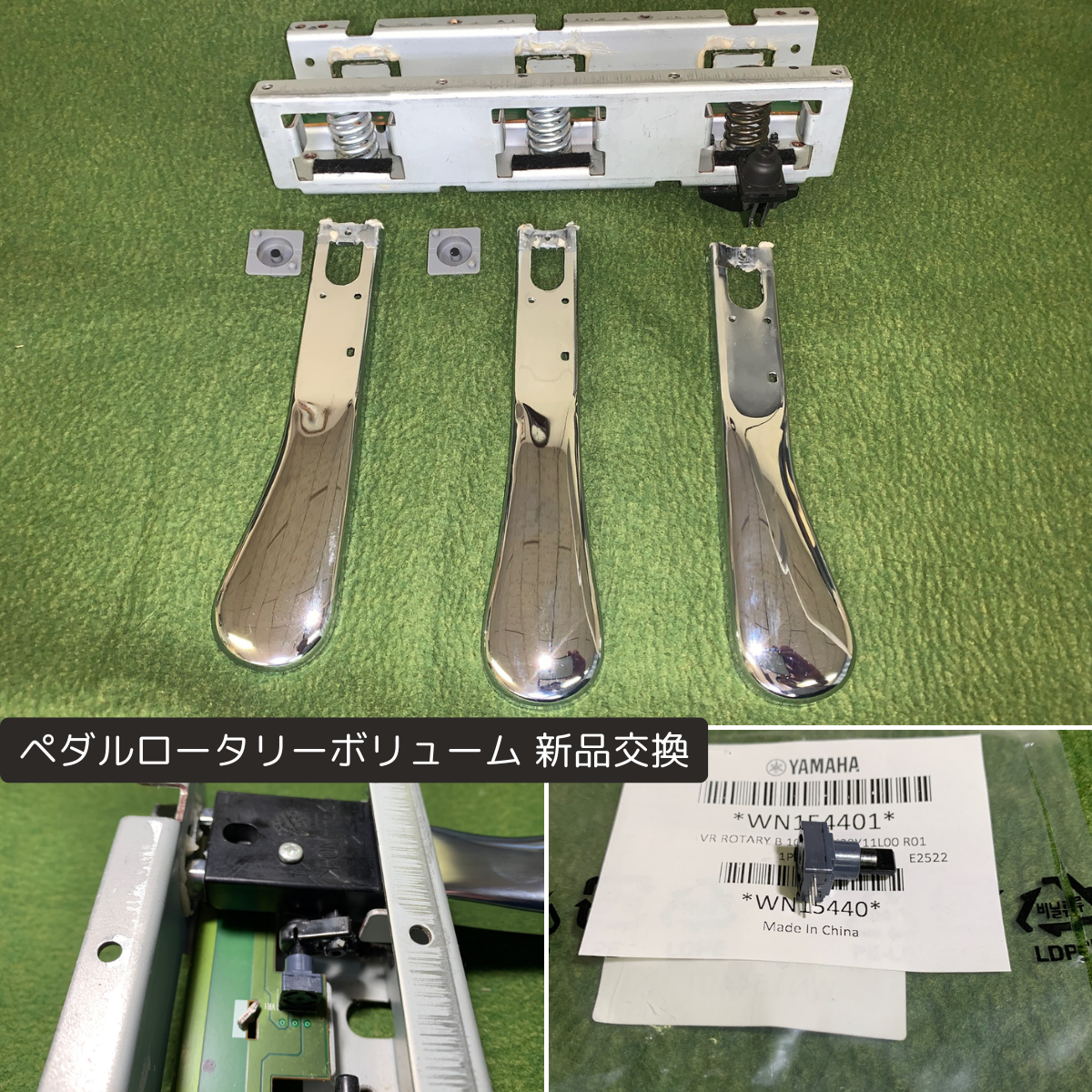 | ペダル | ・ペダルユニット&EXPペダル清掃&可動部グリス塗布 ・EXPペダルマット新品交換 ・ペダルボード脱着清掃&塗装補修 ・接点ゴム接点箇所無水アルコール清掃 ・鍵盤磨き |