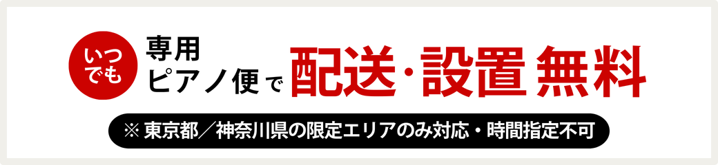 - 配送方法:お部屋のご希望箇所まで設置を行う専用ピアノ便にてお届けします。