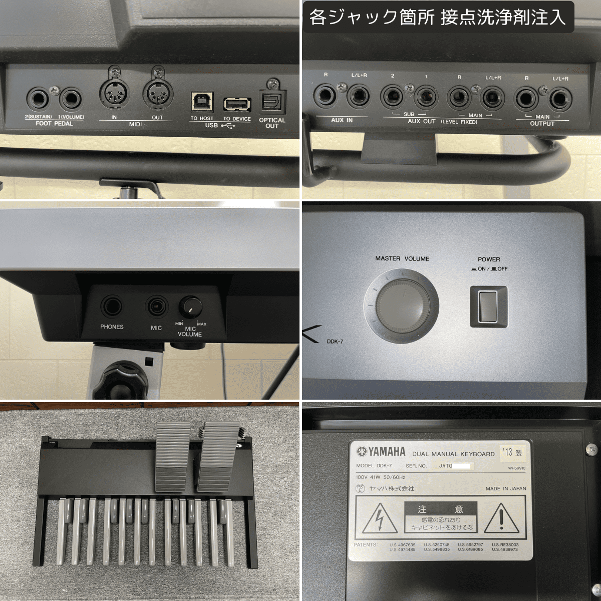 | ペダル | ・ペダルユニット清掃&可動部グリス塗布 ・接点ゴム接点箇所無水アルコール清掃 ・EXPペダル清掃 ・EXPペダルマット新品交換(左右) ★ ・PKカバー新品交換 ★ ・鍵盤磨き |